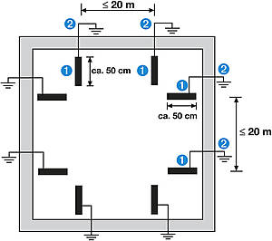 1=Disbon 973 Kupferband2=Liţă din cupru (4 mm2) pentru conectarea la împământare (conductor inelar)